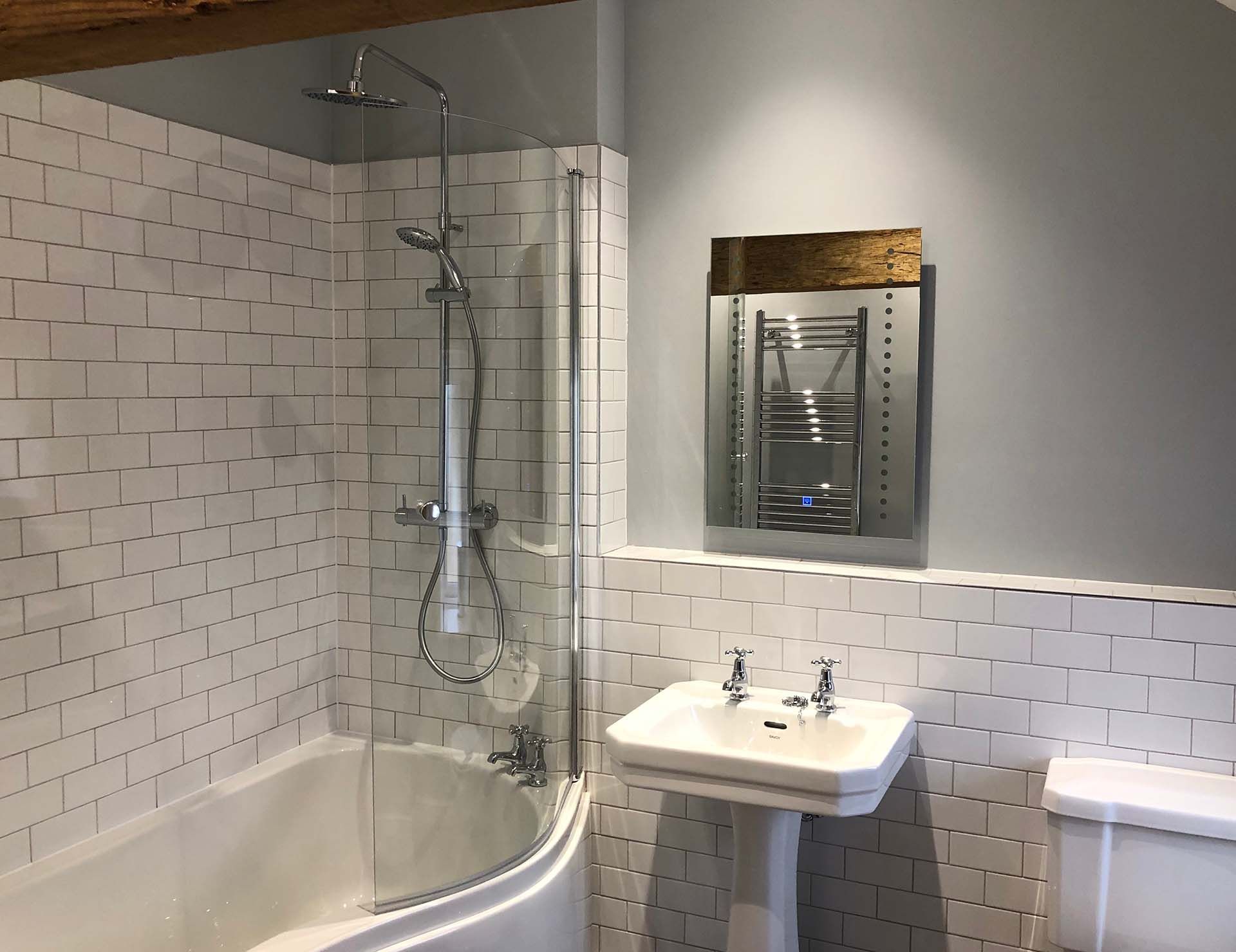 The building was completely re-pointed using lime mortar with any badly damaged bricks replaced with reclaimed bricks, the timber roof was completely made from scratch by our talented craftsmen with the existing queen post trusses fully refurbished, with new clay pantiles as covering. Our newly opened bespoke timber workshop made all of the sapele hardwood external windows and doors, the walls, floors and ceilings were fully insulated and plastered to give a modern, clean feel to the property with quirky exposed traditional features.